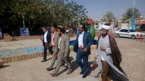 به گزارش روابط عمومی شهرداری بافق : رئیس و اعضای شورای اسلامی شهرو شهردار بافق در اولین روز کاری و اداری سال جدید پس از تمام شدن تعطیلات نوروز ؛ صبح امروز یکشنبه پنجم فروردین 97 در آستانه چهلمین روز خاکسپاری خوشنامان گمنام در روستای مبارکه بافق یکبار دیگر با آرمانهای والای شهدا و ایثارگران هشت سال دفاع مقدس ؛ تجدید میثاق نمودند.