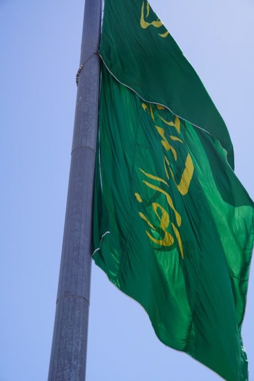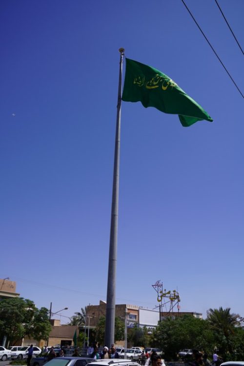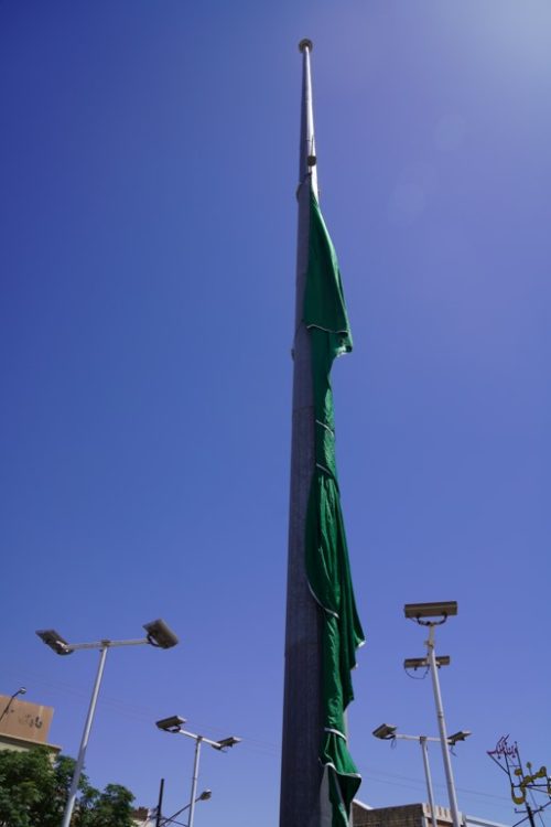 اهتزاز پرچم بزرگ یا فاطمه الزهرا به مناسبت فرا رسیدن ایام سوگواری بانوی دو عالم حضرت فاطمه الزهرا (س) در بلوار وحشی بافقی