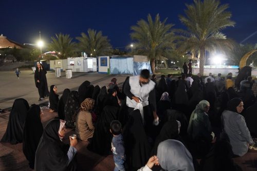 استقبال مردم و مسافران نورزی از اقامهی نماز جماعت در مجموعه تفرجگاهی آبشار بافق