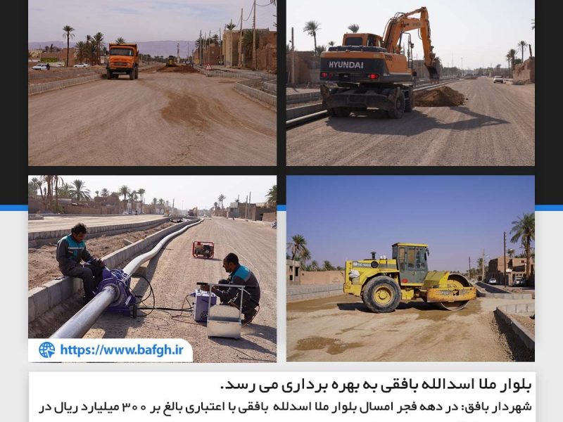 شهردار بافق: در دهه فجر امسال بلوار ملا اسدالله بافقی با اعتباری بالغ بر ۳۰۰ میلیارد ریال در بافق رسما” افتتاح به بهره برداری می رسد.