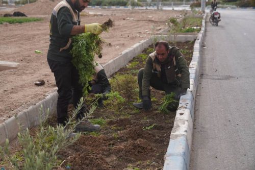 روایت تلاش : کاشت گل های فصلی در معابر سطح شهر ( بلوار 15 خرداد جنب اداره آب و فاضلاب )