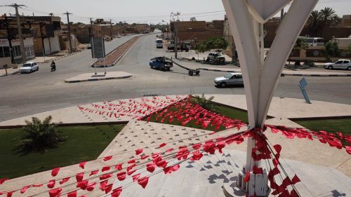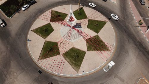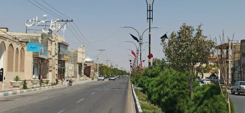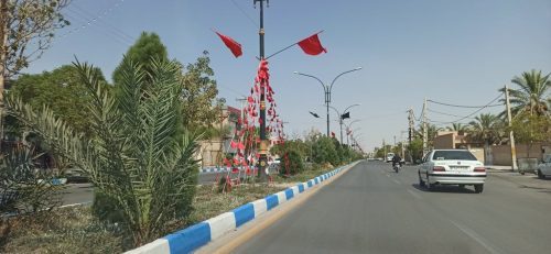 اهتزاز پرچم بزرگ یا فاطمه الزهرا به مناسبت فرا رسیدن ایام سوگواری بانوی دو عالم حضرت فاطمه الزهرا (س) در بلوار وحشی بافقی