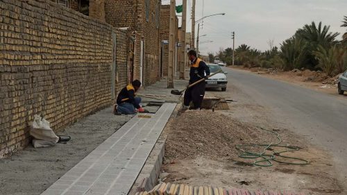 روایت تلاش : گزارش تصویری از پیاده رو سازی خیابان آتش نشانی ( نصب سنگ جدول )