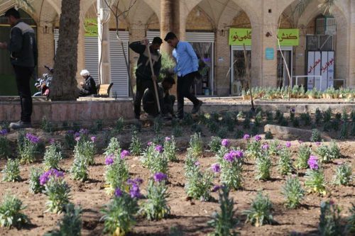 روایت تلاش : کاشت انبوه گل های فصلی در سطح شهر ( میدان امامزاده عبدالله (ع) )