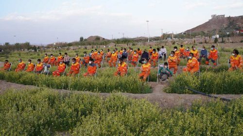 نهالکاری خانواده شهدا و شهردار بافق در تفرجگاه آبشار