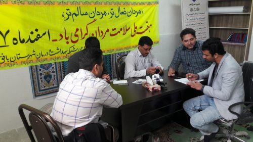 طرح پایش سلامت(تست فشار،قد و وزن) کارکنان شهرداری بافق در هفته ملی سلامت مردان انجام شد.