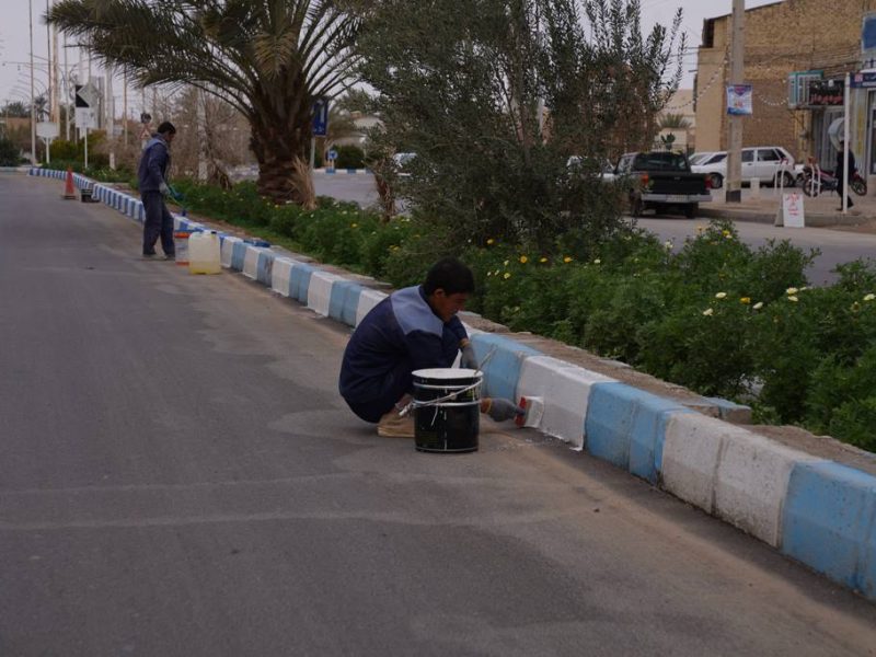 نسیم نوروز : رنگ آمیزی پایه های روشنایی و حصار های ترافیکی معابر سطح شهر