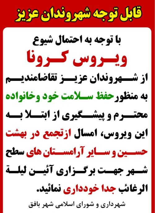 اطلاعیه مهم: قابل توجه شهروندان عزیز