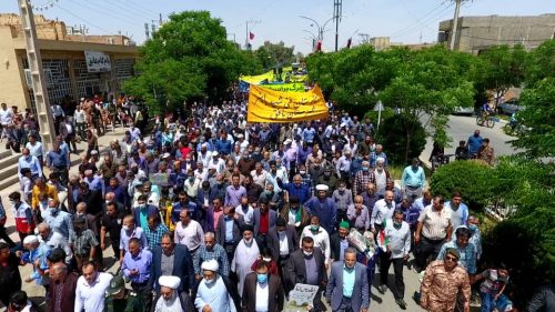 حضور شهردار، اعضای شورای شهر و پرسنل شهرداری بافق در راهپیمایی ۱۳ آبان