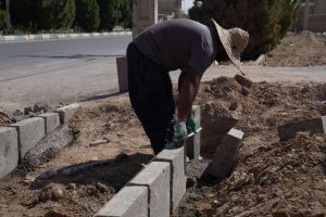 روایت تلاش : گزارش تصویری از تکمیل بلوار شهدا ( نصب سنگ جدول لاین دوم )