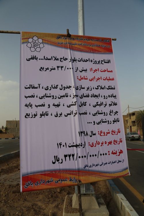 بلوار حاج ملا اسدالله بافقی به بهره برداری رسید